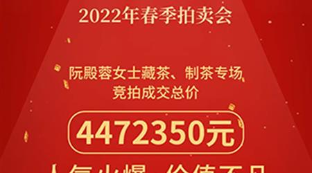 萬(wàn)眾矚目的“陳年普洱及佳茗”成交喜人,中國(guó)嘉德2022春季拍賣會(huì)阮殿蓉女士藏茶、制茶拍賣專場(chǎng)總攬4472350元。