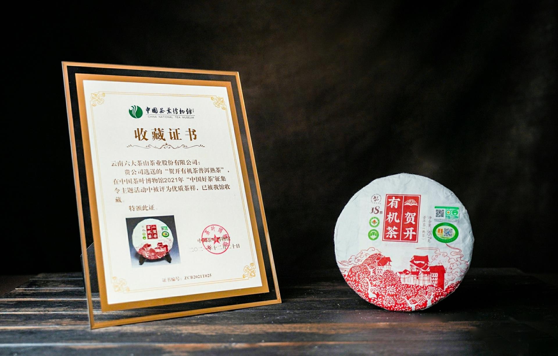 六大茶山“賀開有機茶普洱茶熟茶”被中國茶葉博物館收藏,并頒布收藏證明!
