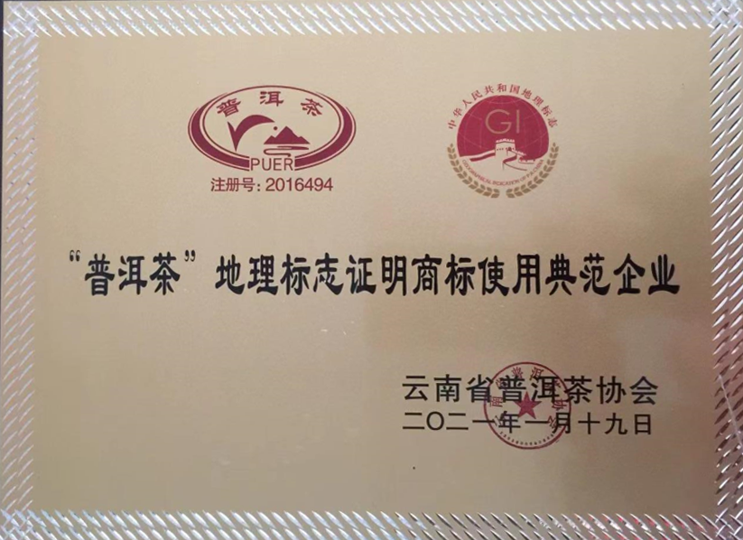 普洱茶地理標(biāo)志證明商標(biāo)使用典范企業(yè)